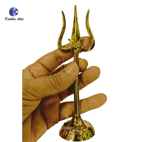 Beautifully crafted small metal Trishul with a premium pure gold electroplated finish.