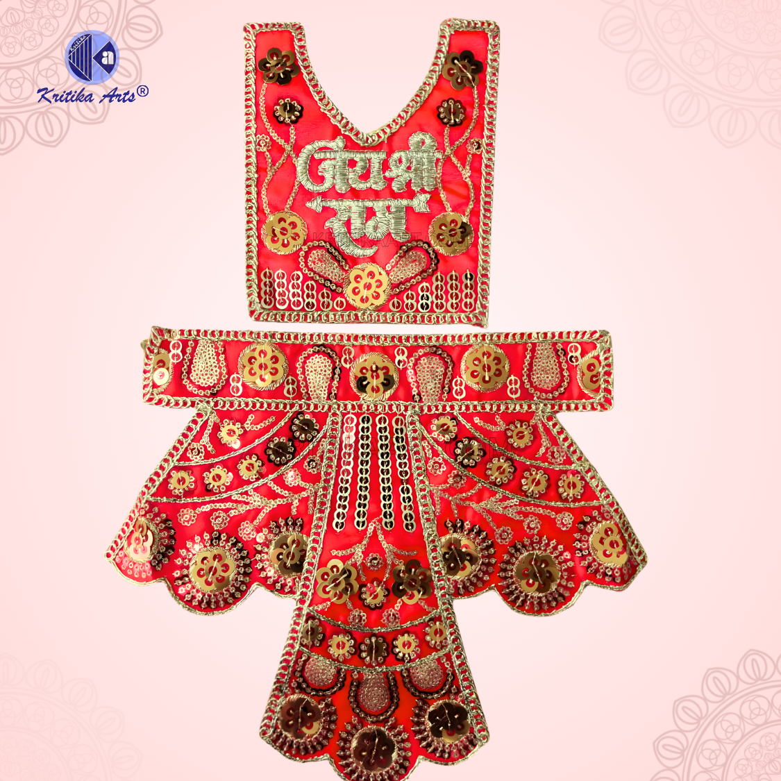 This is a new arrival, featuring premium quality fabric with intricate jari gota and stone work, giving a rich and traditional look. Ideal for daily shringar, temple decoration, and festive occasions.